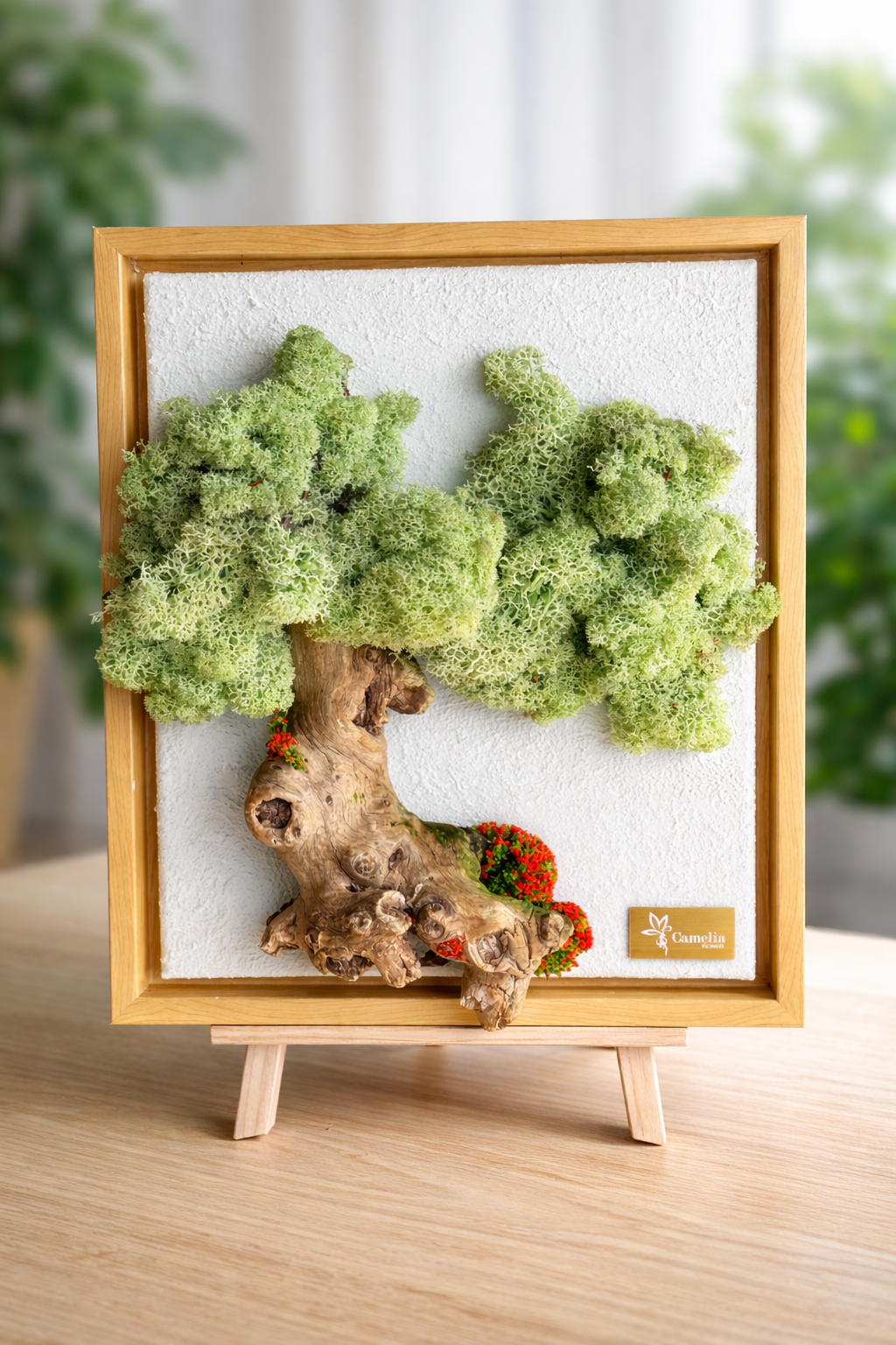 Add natural greenery to your space without the maintenance. This Moss Tree Wall Art is handcrafted by the Camelia team using preserved natural moss and a real wood trunk, creating a realistic and long-lasting botanical piece.