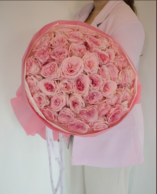 A tender bouquet of Pink O’Hara roses, offering soft blush tones and a gentle fragrance. Douce Étreinte is a poetic expression of love and grace like a hug in bloom.