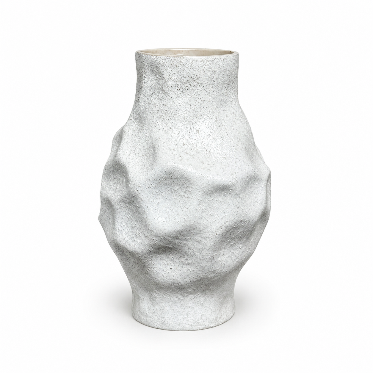 Add a touch of sculptural, raw beauty to your home with the Alabaster Crater Vase. Inspired by organic rock formations, this piece features a heavy-textured, pitted surface and a hand-molded, asymmetrical silhouette. Its crisp white finish creates a clean, Mediterranean aesthetic that pairs perfectly with minimalist or coastal interiors.