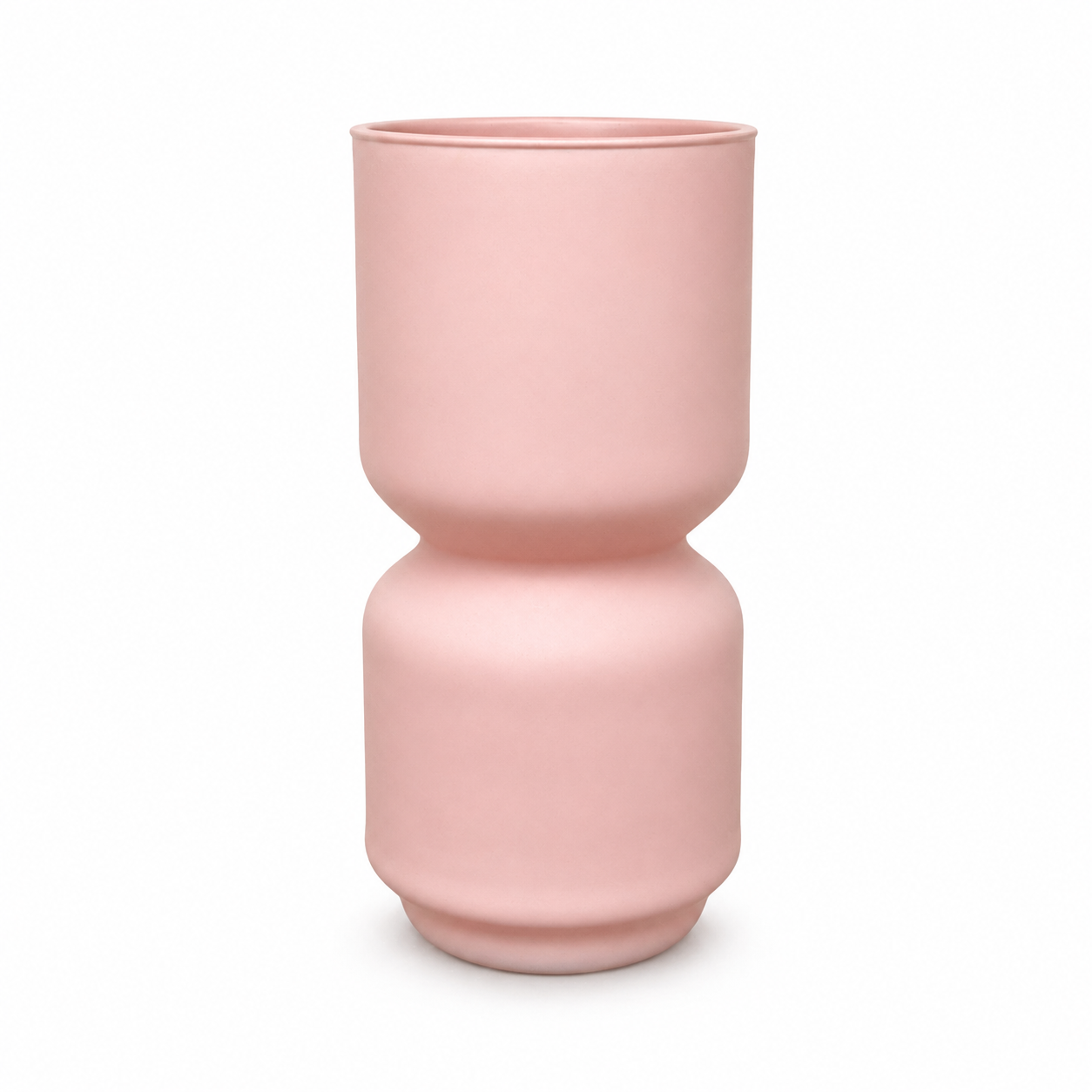 Elevate your space with the Peony Totem Vase, a perfect example of modern, soft-sculptural design. This piece features a vibrant bubblegum pink finish and a bold, double-tiered silhouette. Its smooth matte texture and architectural shape make it a standout decor item that feels both playful and sophisticated.