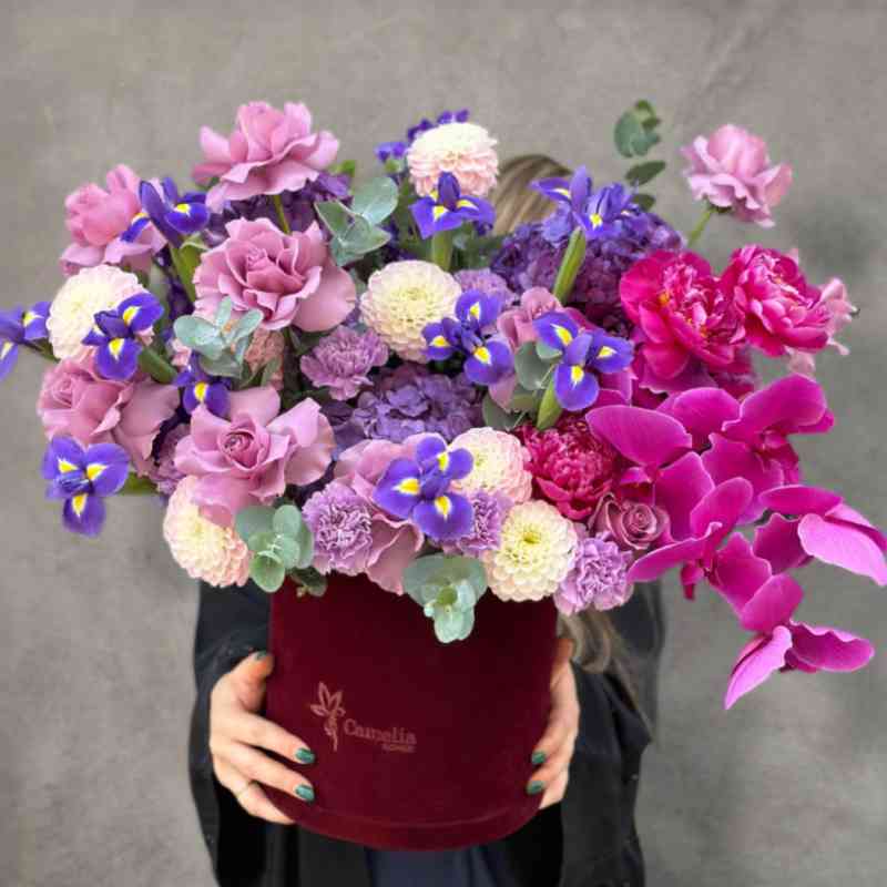 This exquisite shades of purple flower box arrangement is a captivating blend of rich and soft purple tones, creating a luxurious and elegant display. Featuring deep purple orchids, soft lavender roses, and delicate lilacs, the arrangement is complemented by lush greenery for added texture and depth. The varying shades of purple, from light lavender to rich violet, create a stunning contrast that adds both vibrancy and sophistication. Nestled in a sleek, modern box, this arrangement is perfect for any occasion, whether it’s a birthday, anniversary, or a thoughtful gift, bringing a sense of elegance and charm to any space.